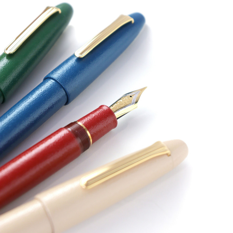 The Ishime-nuri process particularly lends itself to the colors chosen by Sailor for the Iro-Miyabi line, which includes pale pinks and deep reds. The pen is finished with a 21-karat gold nib, adding the last bit of luxury to the feel of this pen.