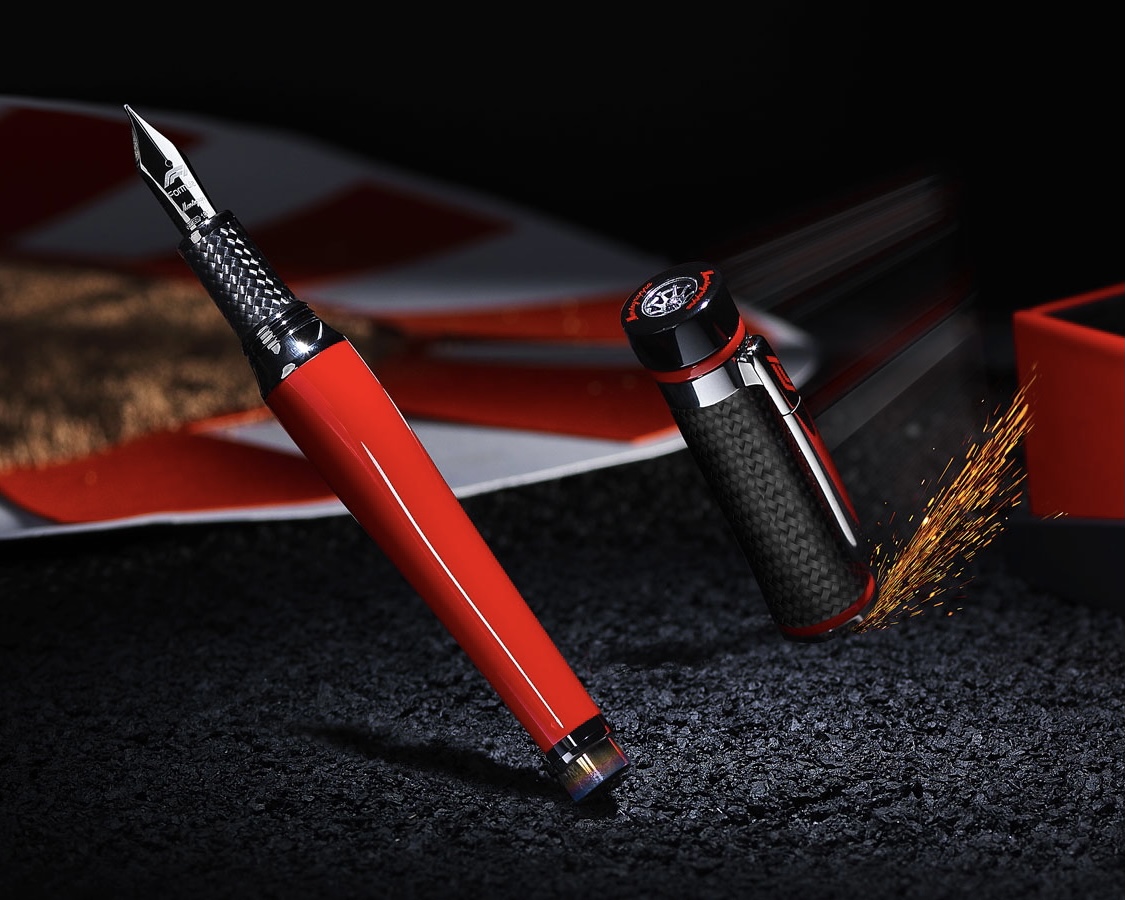 Details such as the carbon-fibre section giving off airs of trackside ambience as well as the scorched tailpipe finish, simulated air intakes and the unique clip and finial pairing add so much character to this pen. As for the hardware components, each one is custom-machined by hand and coated with gritty black ruthenium.