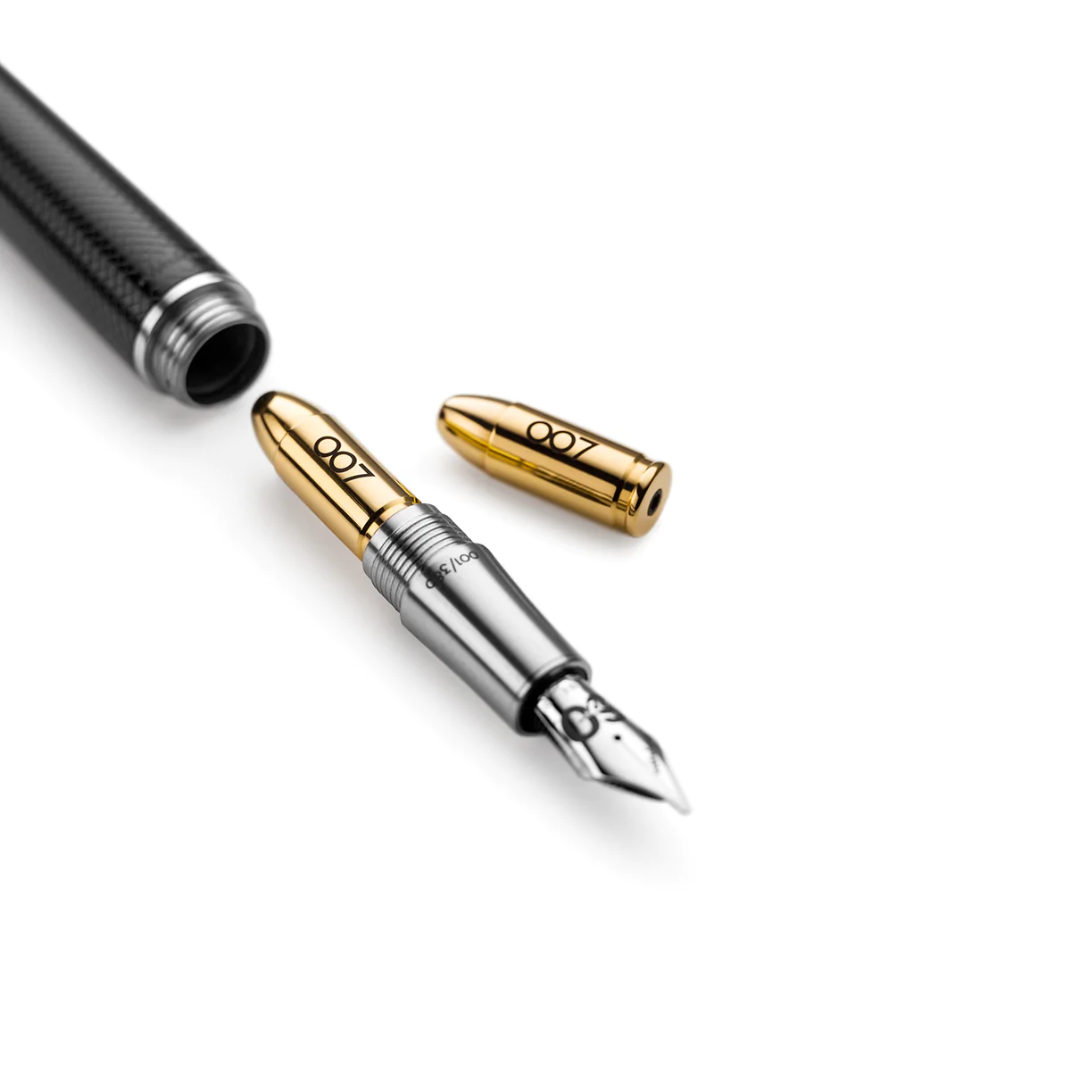 The heart of the pen, an 18k gold nib, is adorned with the James Bond 60th Anniversary logo and is available in extra-fine, fine, medium, broad and Stub 1.1.