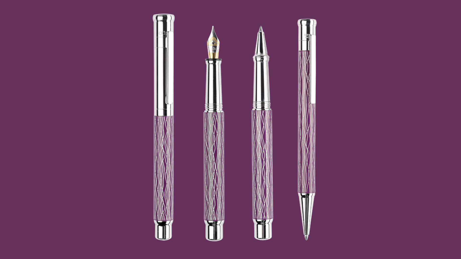 Weighing approximately 39 grams with a length of 13 cm, the new design04 Wave Lila feels comfortable in the hand and offers a smooth writing experience thanks to the steel or 18-carat gold nib it features. The collection consists of a fountain pen, a rollerball pen and a ballpoint pen, all available to order at ottohutt.com